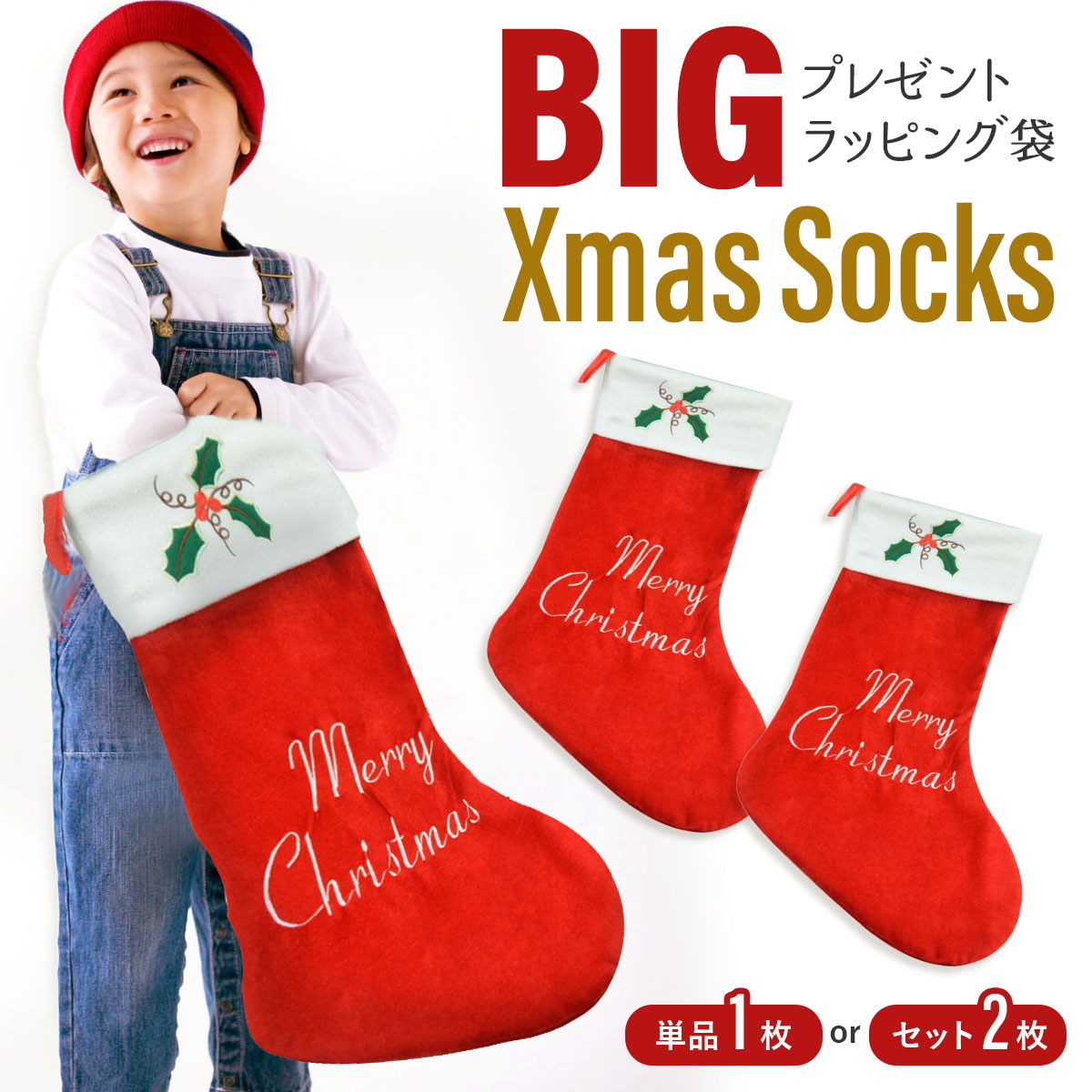 y538 【単品・2枚セット】クリスマス 靴下 プレゼント 大きい 特大 くつ下 サンタ くつ下 サンタクロース ソックス クリスマスプレゼント 袋 入れ物 ギフト入れ プレゼント入れ 靴下