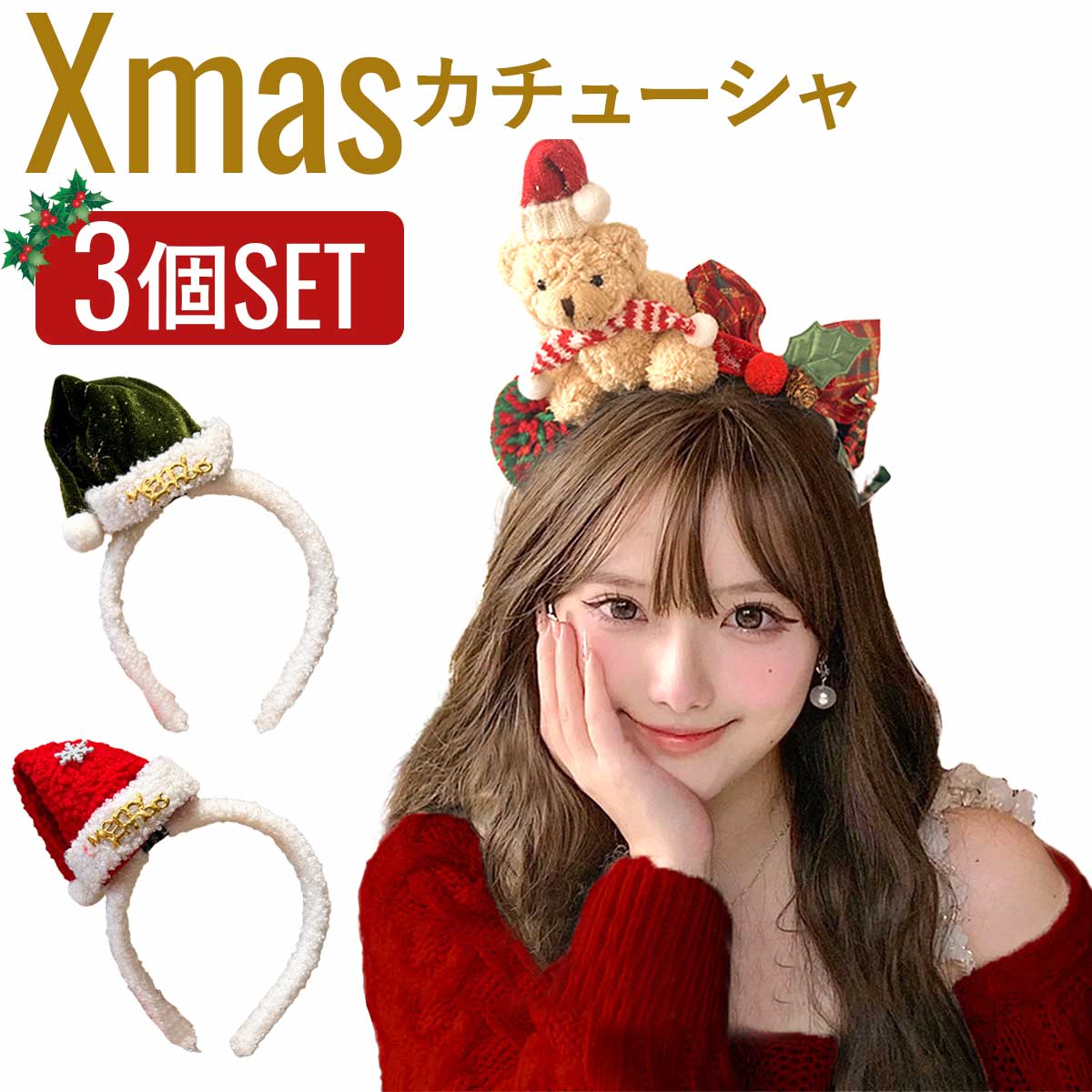 ya651 【3点セット】クリスマス コスプレ christmas カチューシャ セット サンタ 帽子 頭 髪飾り Xmas ヘアバンド 可愛い ヘアアクセサリー ペアルック