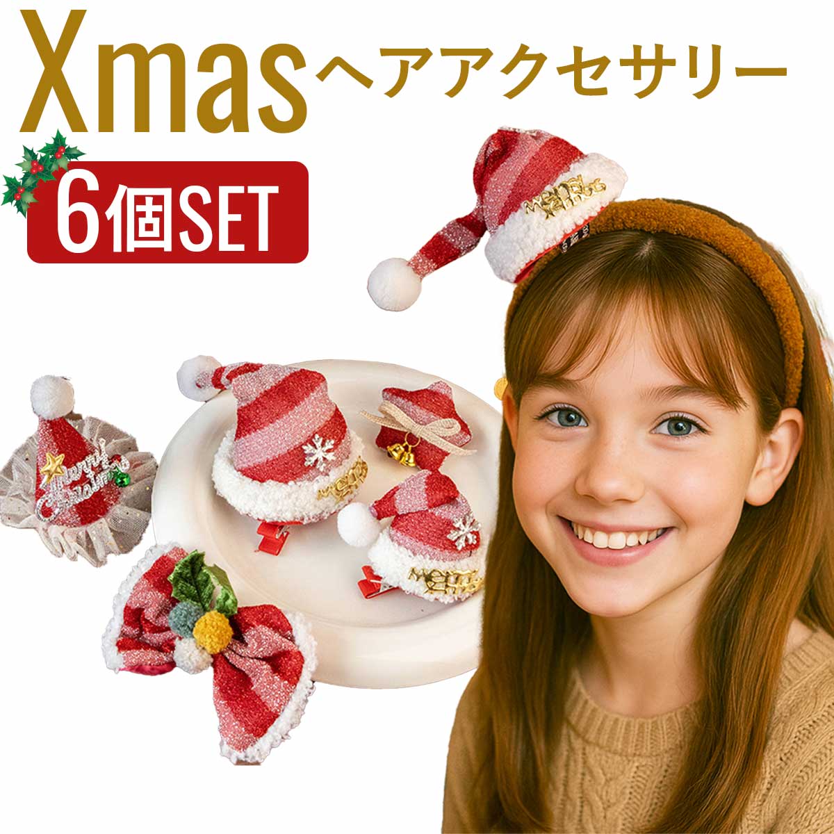 ya660 【充実6点セット】クリスマス コスプレ 髪飾り ヘアクリップ カチューシャ セット Christmas 仮装 衣装 ヘアバンド 帽子 ヘアアクセサリー ヘアピン ヘアゴム 大人 子供 コスチューム コス