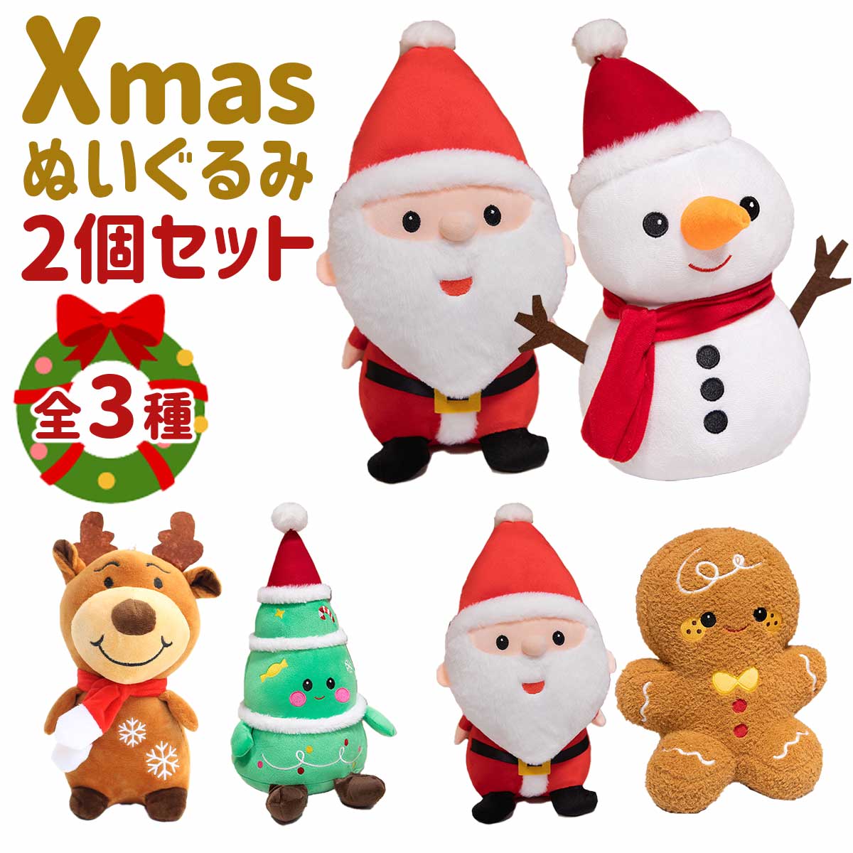 ya662 【2個セット】クリスマス サンタ ぬいぐるみ サンタクロース トナカイ 人形 2個 セット クリスマスツリー 飾り 雪だるま クッキー かわいい インテリア 装飾 クリスマスプレゼント