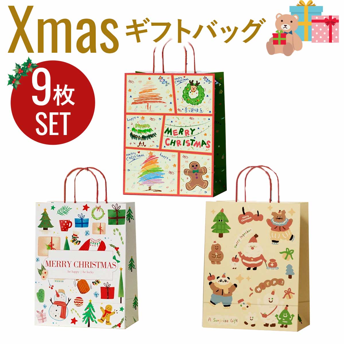 ya689 【充実セット】クリスマス ラッピング 袋 セット christmas ギフトバッグ Xmas プレゼント袋 手提げ袋 ギフト バック 手提げ プレゼント 紙袋 まとめ売り おもちゃ袋 贈り物