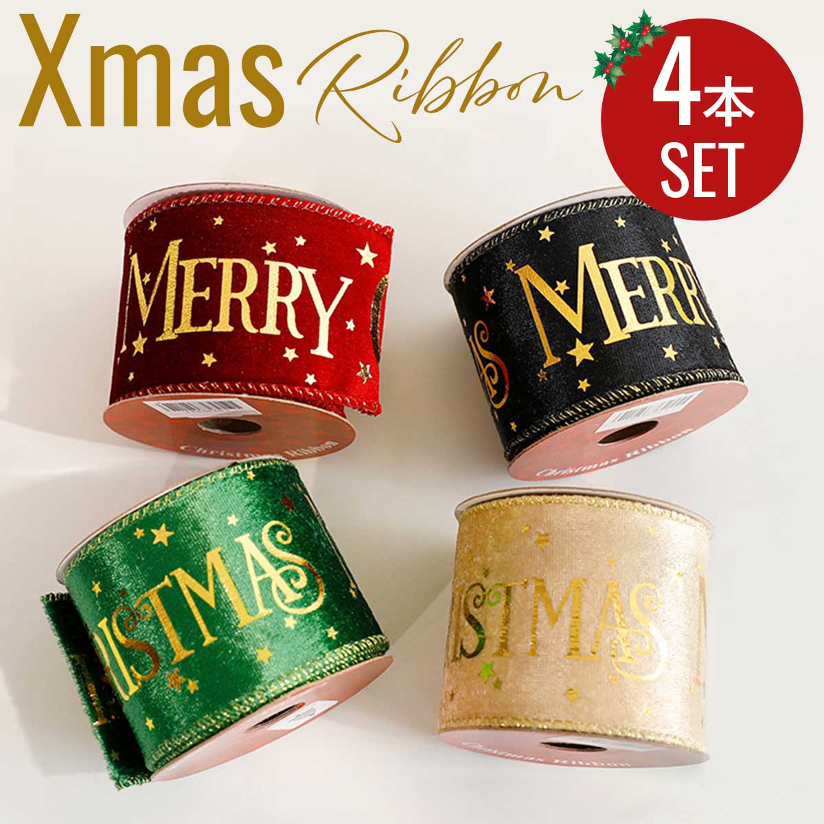 ya708 【4個セット】クリスマス ラッピング リボン セット christmas 紐 デコレーション くりすます 飾り Xmas プレゼント diy 包装紙 袋 ギフトボックス
