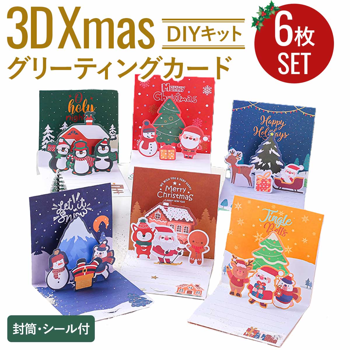 ya731 【6種セット】クリスマス カード セット メッセージカード グリーディングカード クリスマスカード christmas ギフト ギフトカード 大量 Xmas ラッピング かわいい