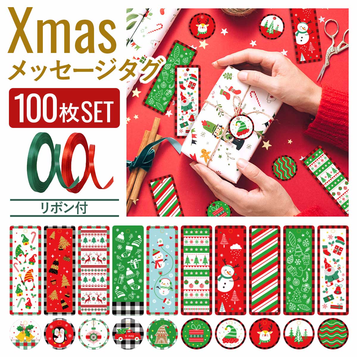 タグ100枚(20柄×5枚) 、リボン(赤×1巻、緑×1巻)