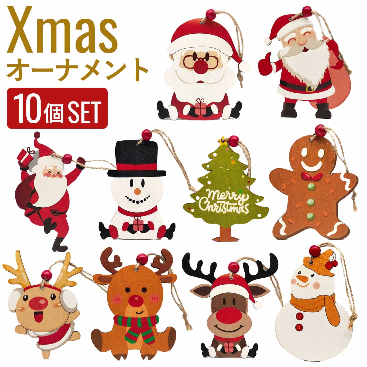 ya740 【10種類セット】クリスマス 飾り セット クリスマスツリー オーナメント cristmas 飾りつけ 装飾 Xmas インテリア 雑貨 飾り付け 木製 かわいい