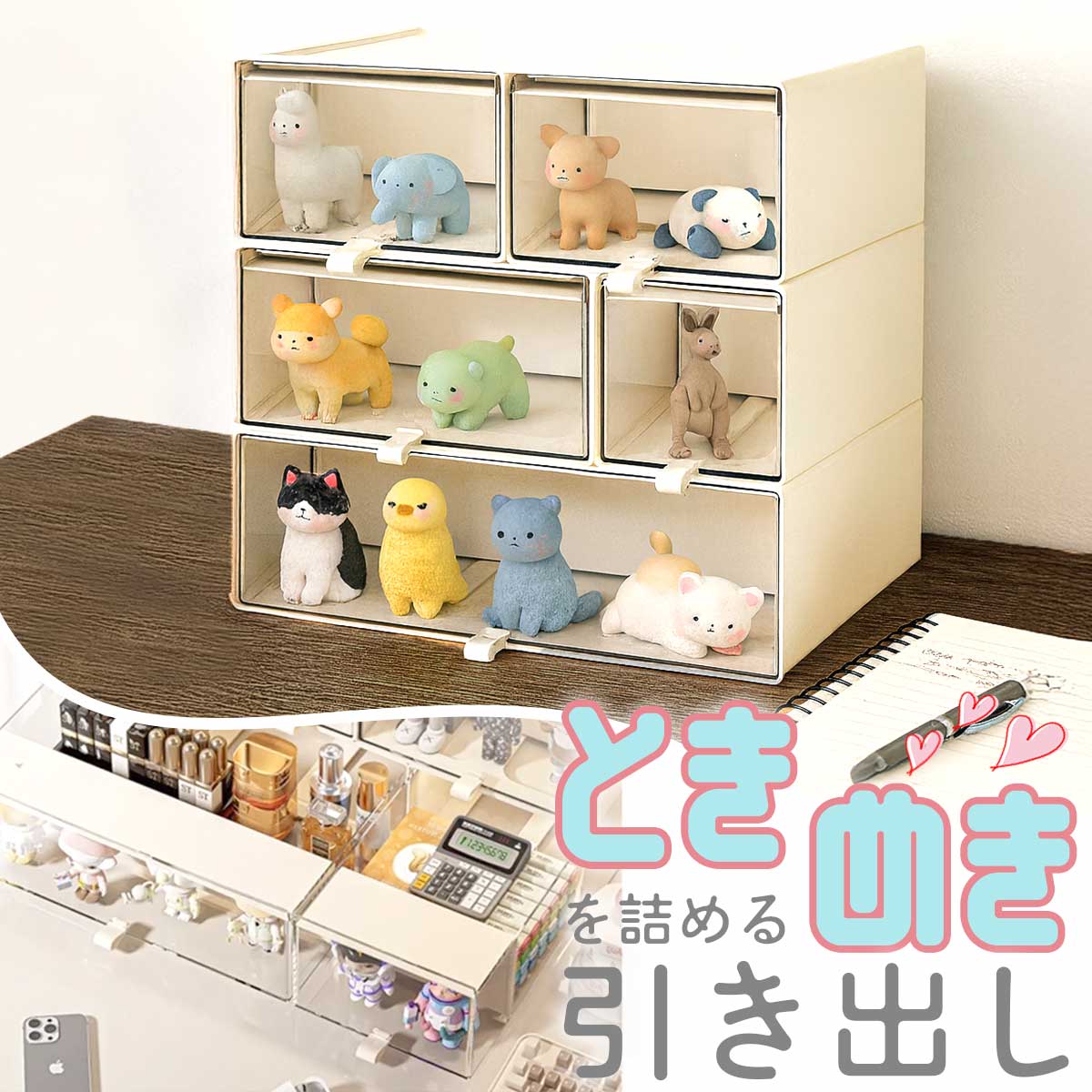 ya857 フィギュア ディスプレイケース 引き出し デスクオーガナイザー 10cm コンパクト おしゃれ フィギュアケース 収納 卓上 ぬいぐるみ アクスタ 小物入れ かわいい 推し活 コレクションケース アクリルスタンド ディスプレイ ショーケース